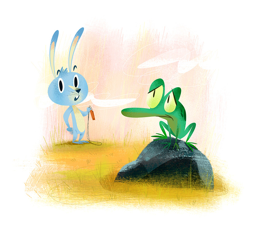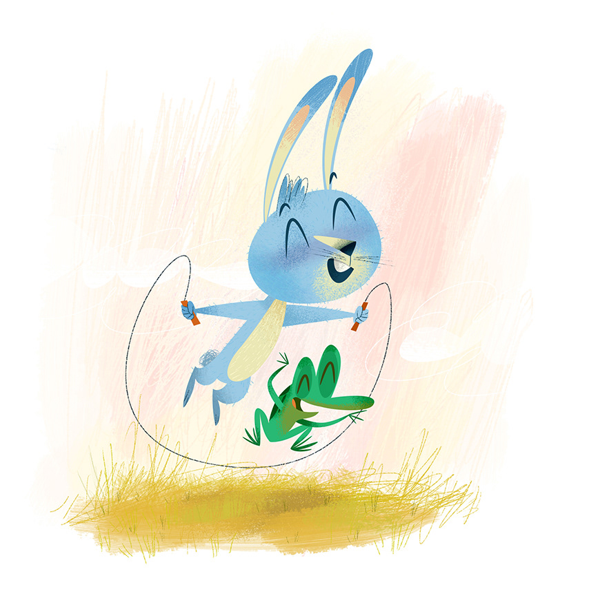 Un conejo muy pillo conoce a una ranita y se convierten en amigos del salto. Happy looking bunny holding a jump rope :) then...